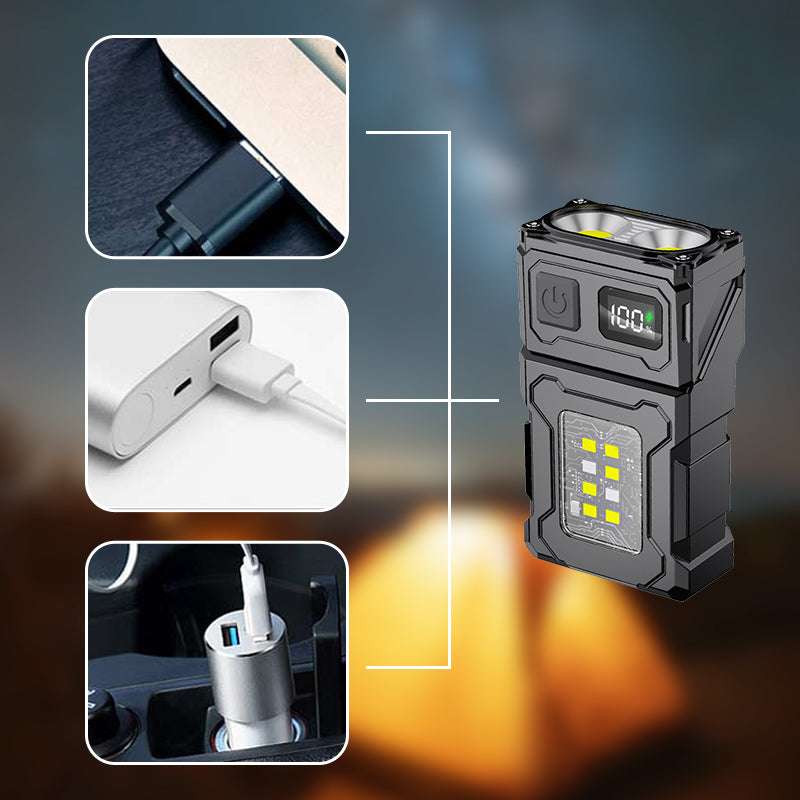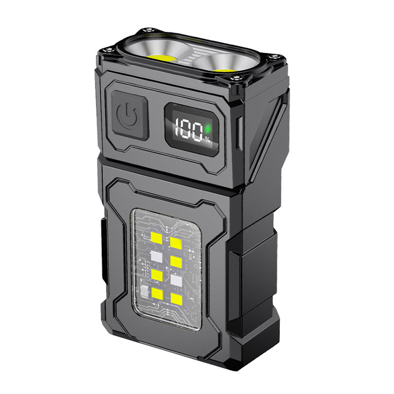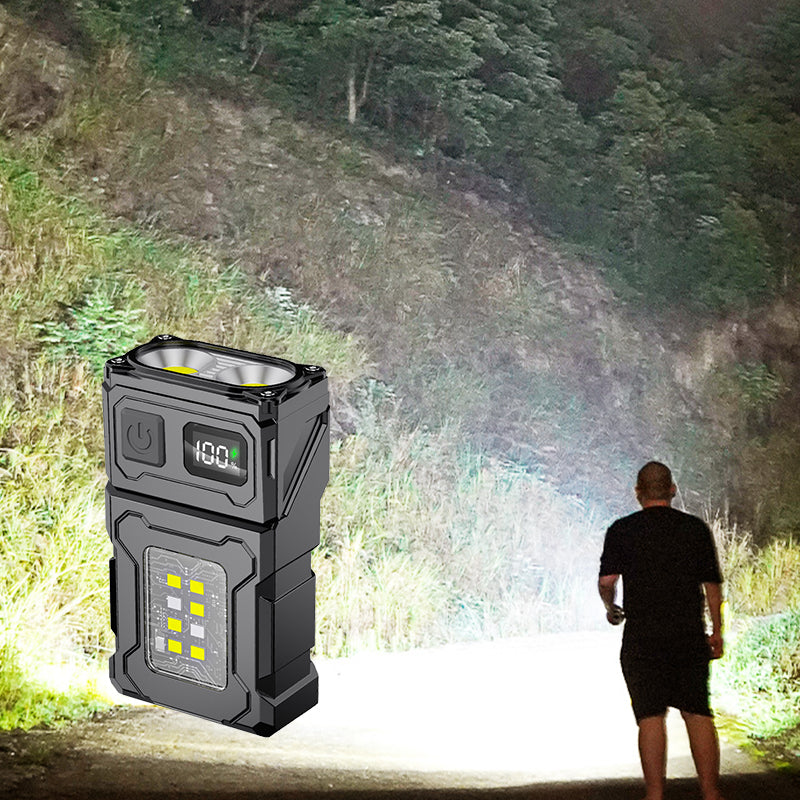 HIGH-CAPACITY RECHARGEABLE BATTERY: Built with a high-capacity polymer rechargeable battery, this flashlight offers impressive battery life. It charges quickly, allowing you to stay powered up and ready for use, with a digital display to show remaining power.