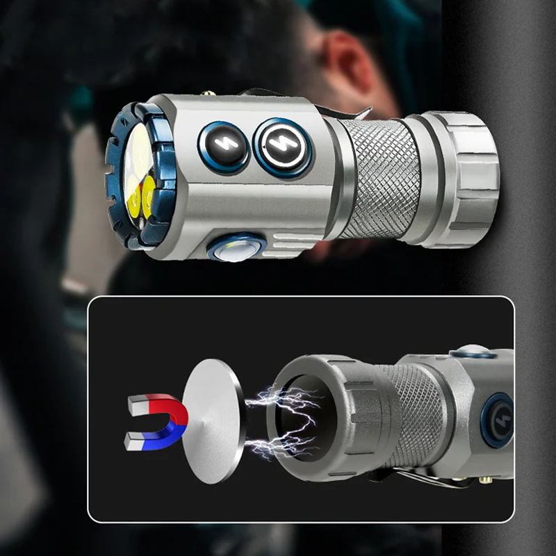 BUILT-IN TAIL MAGNET- Powerful magnetic tail cap attaches securely to any metal surface, providing stable, wobble-free illumination-perfect for auto repair, garage work, or tool sheds.