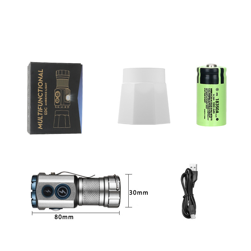 Package Includes: 1* Flashlight +1* Box + 1* Charging Cable + 1* Lampshade + 1* Battery