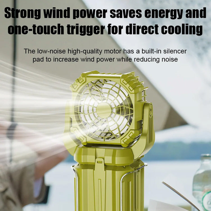 DUAL-FUNCTION BRILLIANCE – 100-200m ultra-bright LED beams pierce through darkness, while the quiet turbo fan delivers cooling airflow. Switch modes instantly—light up trails, chill by the tent, or host backyard parties. Two tools, one rugged device!
