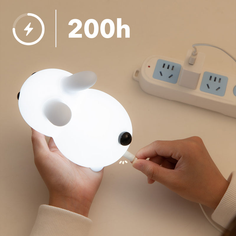 ADORABLE RABBIT DESIGN: This night light features an adorable rabbit design, adding a touch of cuteness to your space. The soft silicone material creates a pleasant texture and makes it safe for children to touch.